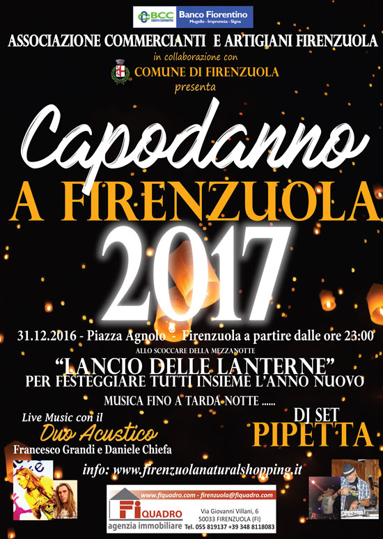 Il Capodanno nella splendida piazza di Firenzuola...Una tradizione a cui quest'anno pensavamo di dover rinunciare ... e invece la festa ci sarą!Grazie al contributo dell'amministrazione comunale , la nostra associazione riproporrą la tradizionale festa di Capodanno in piazza.Musica dal vivo fino a tarda notte per un brindisi sotto la Rocca ..Ecco la locandina ufficiale